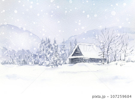 雪 家 街並み 冬 景色 背景 イラスト 手描き シンプル 北欧風 素材