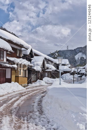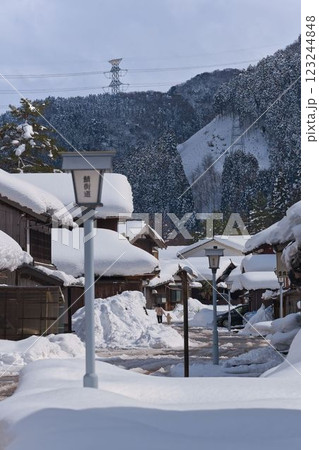 雪の若狭鯖街道熊川宿の風景