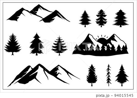 Collection of Black Silhouette Mountain with Pine Tree Illustrations
