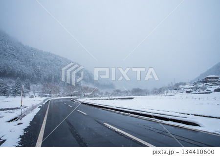 雪が積もった田んぼと馬瀬川《岐阜県 下呂市 馬瀬》