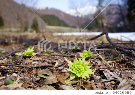 フキノトウの芽生え 只見町