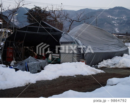 積雪で倒壊したビニールハウス