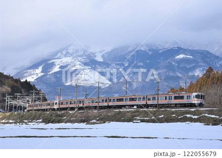 冬晴れの伊吹山麓 海道本線を行く 電車