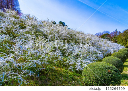 大阪府狭山池公園で満開に咲くユキヤナギ
