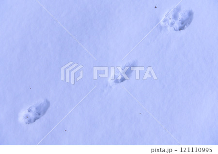 冬 雪の上に残されたエゾリスの足跡