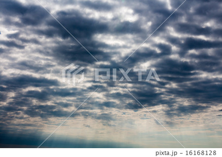 厚い雲間から差し込む薄明光線 希望を感じさせるドラマチックな空模様