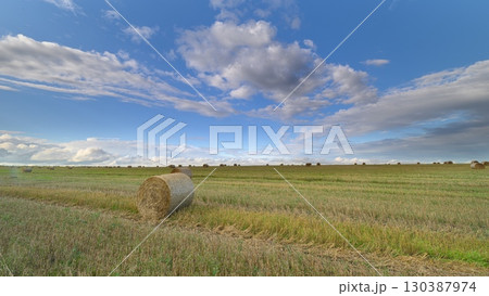 A Beautiful and Scenic Rural Landscape Featuring Hay Bales Under a Clear Blue Sky