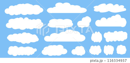 水色の背景に描かれた色々な雲のイラストセット