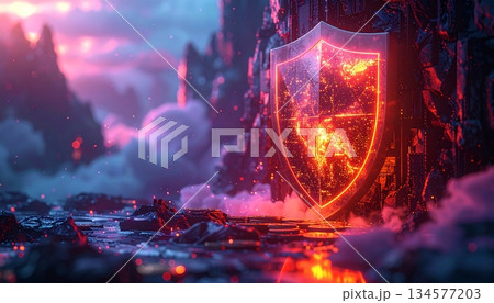 Space filled with orange and black clouds. The clouds are very large and seem to be on fire
