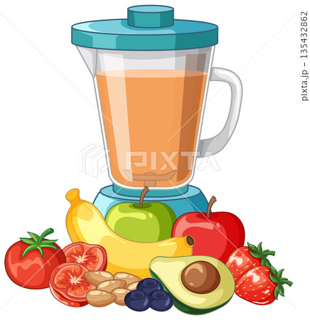 Vector Illustration of a Blender with Fresh Fruits and Vegetables
