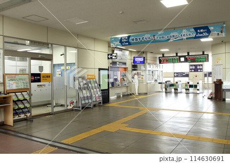 【JR七飯駅、ポスター顔ぼかし済】駅舎、ホームの様子(入場券購入の上撮影)