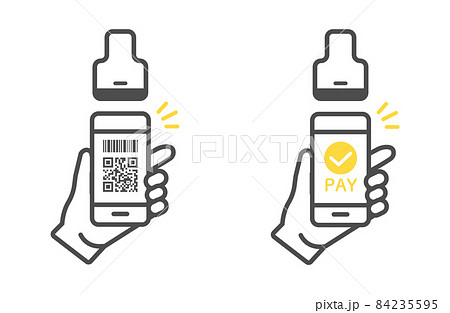 スマホでキャッシュレス決済をするイメージのイラスト素材