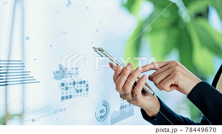 スマホを使うシニア女性 電子マネー キャッシュレス決済