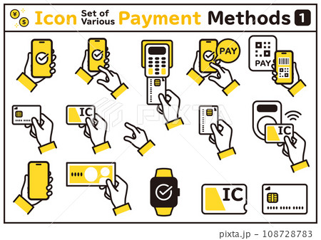 いろんな支払い方法やお金にまつわる手描きイラストセット(カラー/輪郭線なし)