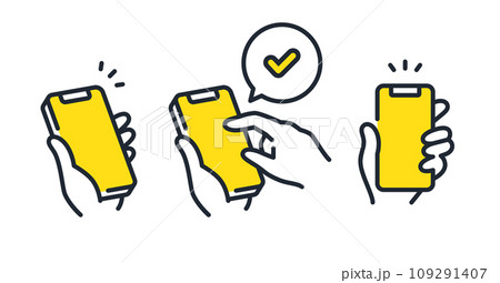 スマートフォンと手のシンプルなベクターアイコンイラストセット素材