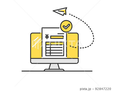 請求書をオンラインのクラウドサービスで送るイメージのイラスト素材