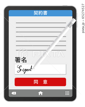 タブレットPC、iPad、タブレット端末で電子サイン署名・決済、ペン入力のビジネスシーンイメージ。