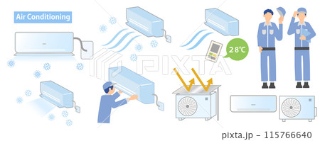 エアコン・空調設備・エアコン工事に関するイラストセット