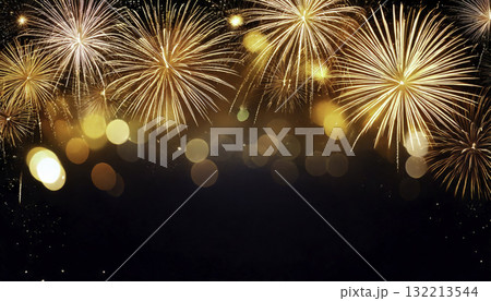 Golden bokeh and glitter create a festive, abstract background of shimmering lights, perfect for a bright holiday celebration
