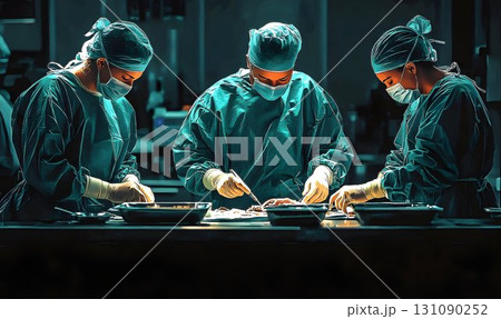 Concentrated Surgeons Performing Delicate Procedure in Dramatic