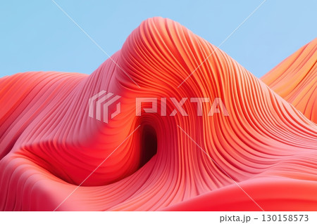 Vibrant waves of red and pink colors create a stunning abstract design against a clear blue sky