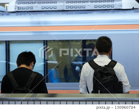 駅にいる男性 撮影協力「京王電鉄株式会社」