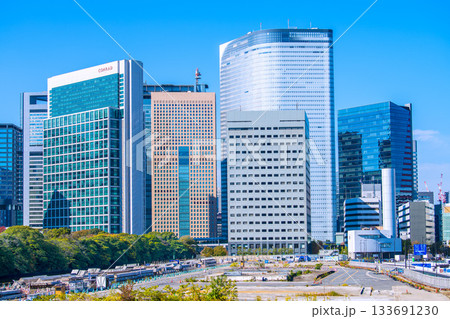 日本の東京都市景観 汐留の摩天楼などを望む。新たな時代へ