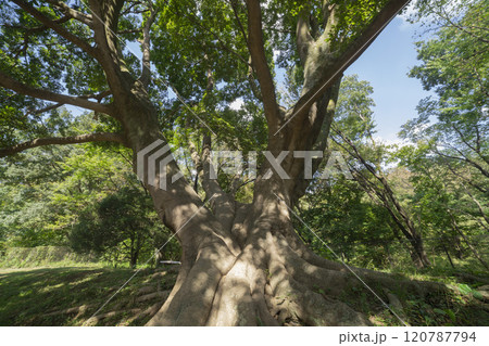【伊予国一宮】大山祇神社 御神木の乎千命御手植の楠と梅雨晴れの青空 愛媛県今治市