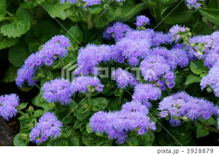 枝分かれした茎先に、アザミに似た小さい花がこんもりと密集して咲くアゲラタム。