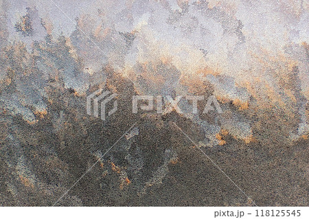 Frosty pattern on winter window. Frost on glass. Patterns on glass in the frosty winter day.
