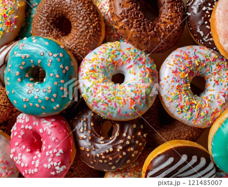 donuts with delicious topping as a background