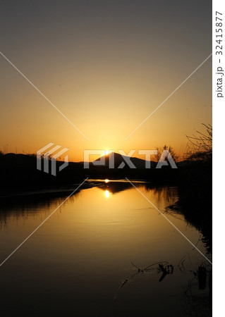 恋瀬川と逆さ筑波 茨城県石岡市風景