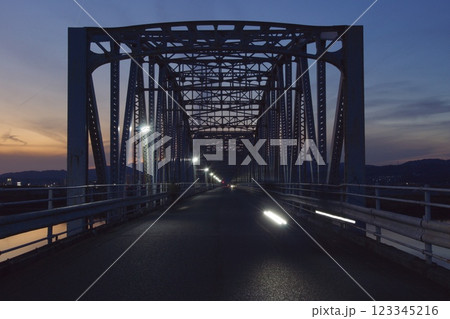 霞橋と高梁川の風景 夕景夜景 星空