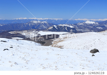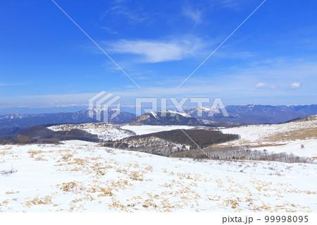 3月の霧ヶ峰 車山から八島ヶ原湿原を望む