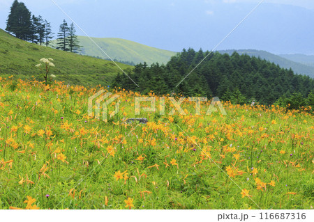 ニッコウキスゲ咲く霧ヶ峰車山肩