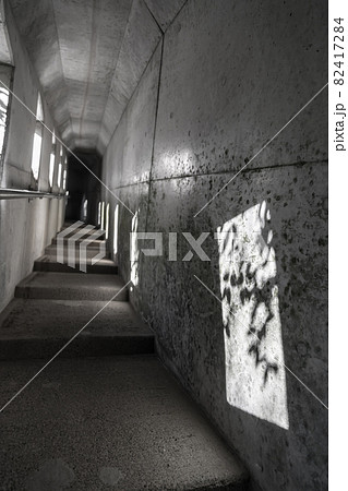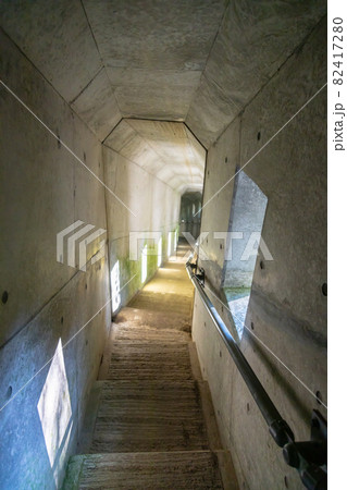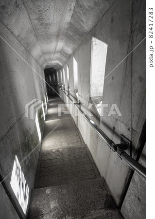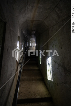 鹿児島県霧島市の千里ヶ滝に至る風景 暗いトンネルと遊歩道