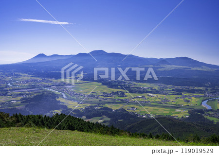 矢岳高原 展望台から眺める加久藤盆地(加久藤カルデラ)