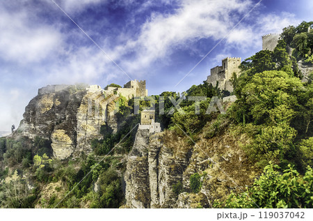 View over medieval Castle of Venus in Erice, Sicily, Italy