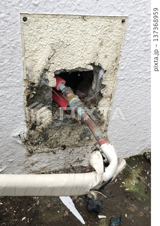住宅設備の老朽化と壁面の配管工事