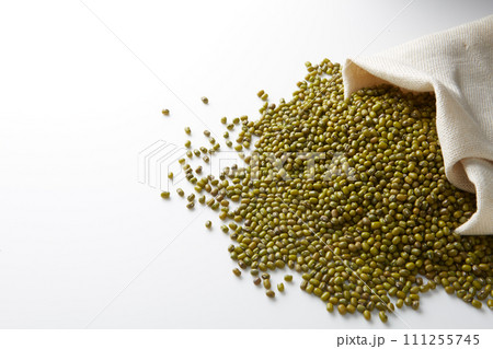 白い背景に置いた緑豆 もやしの種 ムング豆