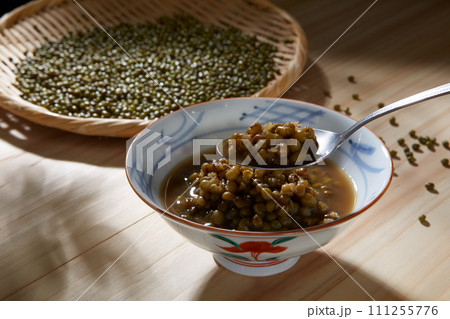 器に盛った緑豆スープ 綠豆湯 ムング豆スープ しるこ