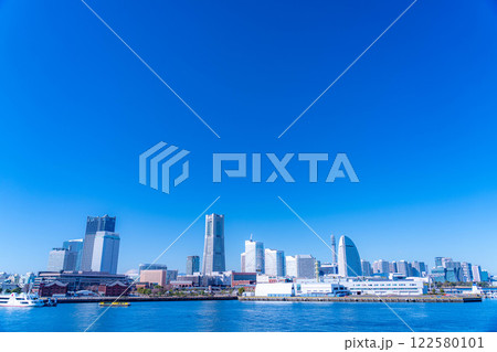 【都市風景】よく晴れた冬の日の横浜・大さん橋から見たみなとみらいの風景【神奈川県】