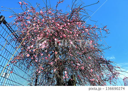 鈴鹿の森庭園 夜間ライトアップに輝く満開のしだれ梅 三重県