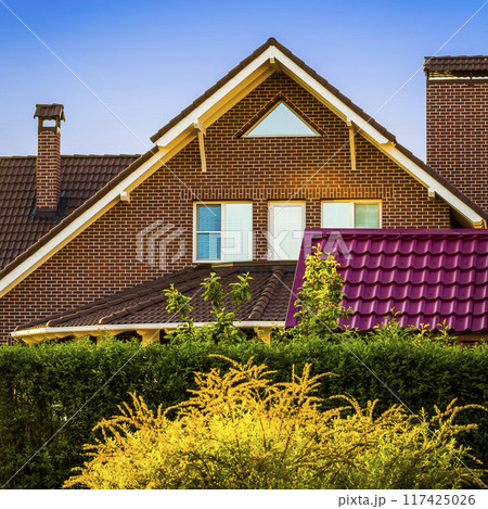 Colorful urban residential buildings with a clear blue sky in a residential area. New buildings