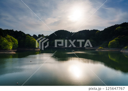 大空と湖面を吹き渡る風 まるでダンスをしているかのような 湖面のリフレクション 奈良布目ダムにて⑦