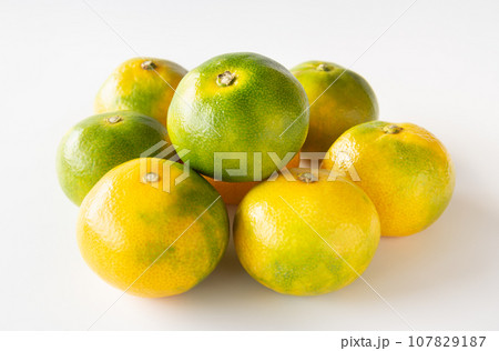 早生ミカン 青ミカン 緑色の皮 明るい背景