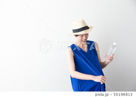 麦わら帽子・女性・白バック