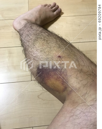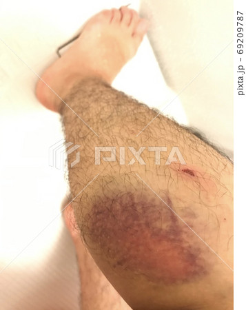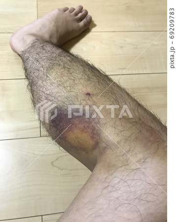 男性の足の打撲の跡
