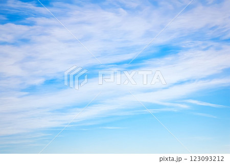 Scenic sky with whispy clouds against a pure blue backdrop, natural background