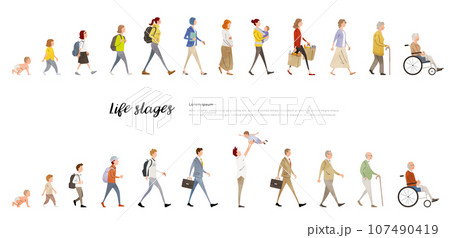 ベクターイラスト素材:男性の一生、女性の一生、人生、ライフステージ